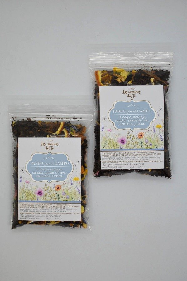 Te negro, cascaritas de naranja, ramitas de canela, rosas y jazmines.