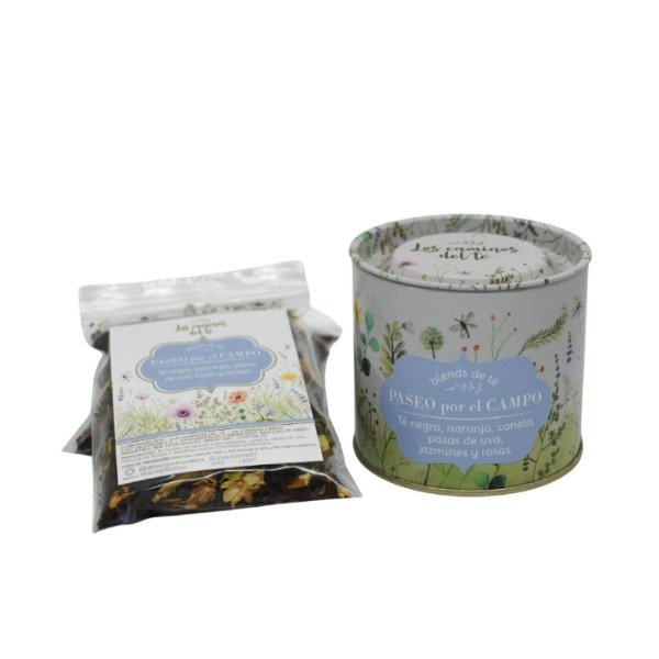 Combina té negro, cascaritas de naranja, ramitas de canela, rosas y jazmines, creando una infusión que despierta los sentidos y nos transporta a un paseo entre flores, hierbas y aromas frescos del campo.