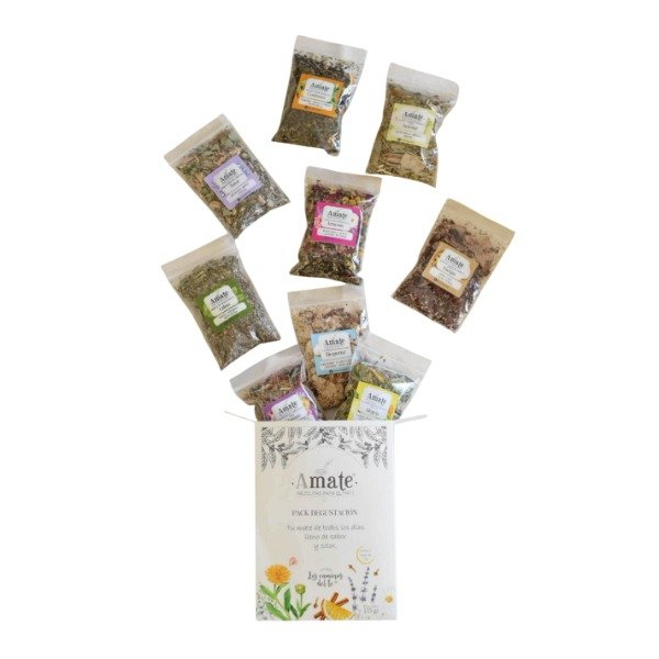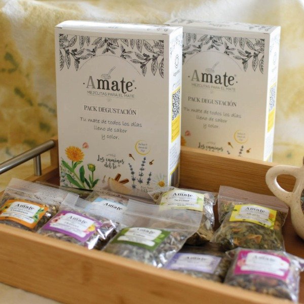 El Pack Degustación Amate reúne las 9 mezclas completas de la línea, permitiéndote explorar cada aroma, cada sensación y cada energía que propone Amate en un formato práctico, delicado y hermoso.