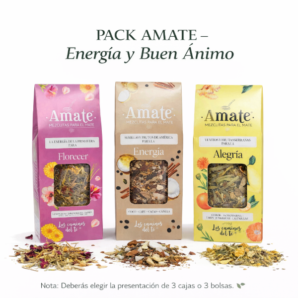 El Pack Amate Energía y Ánimo reúne 3 mezclas vibrantes, creadas para acompañar momentos donde necesitamos impulso, entusiasmo y una mirada más luminosa del día.