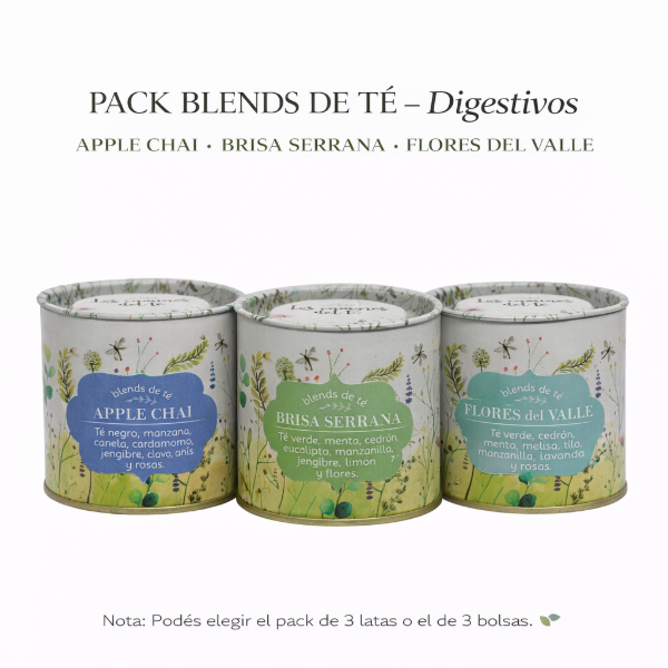 El Pack Blends de Té Digestivos reúne 3 blends cuidadosamente seleccionados por sus propiedades digestivas, relajantes y equilibrantes.